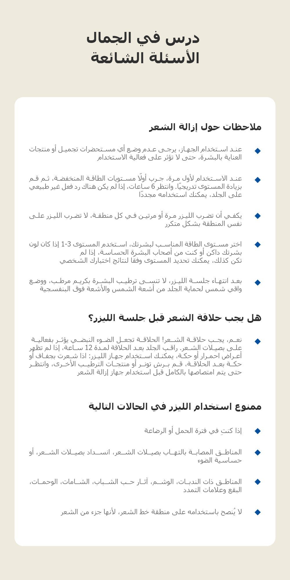 ضمان عامين مع دعم فني وخدمة متابعة مع أخصائية ليزر .